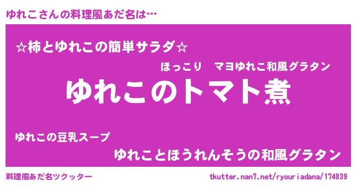 | ピコ太郎風あだ名 | 『ユユ太郎』『ユレ次郎』『ピユ一郎』 |
