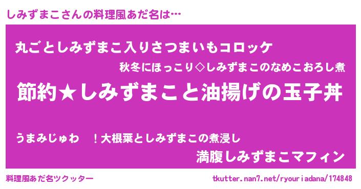 | ヘコむあだ名 | 『しみにゅー』『しみずまこ(笑)』 |