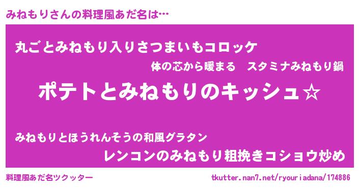 | ヘコむあだ名 | 『みねお』『つくし』『みねもり(笑)』 |