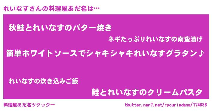 | 男性向けラノベタイトル風あだ名 | 『れいなすの嫁は女の子じゃないと思った?』 |