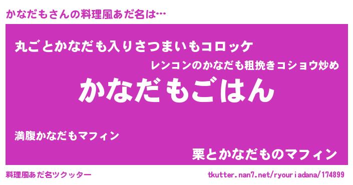 | ヘコむあだ名 | 『かなだも(爆)』『豆乳』『かな太郎』 |