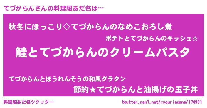 | ヒーロー風カッコイイあだ名 | 『天空の使者てづからん』『幻影騎士テヅ』 |