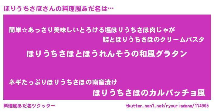 | 胡散臭い通販商品みたいなあだ名 | 『前代未聞の健康食品…その名も「ほりうちさほ」』 |