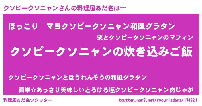 | ヘコむあだ名 | 『クソピークソニャン(爆)』『クソにー』 |
