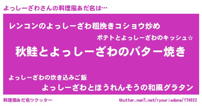 | 意味不明あだ名 | 『永久保存よっしーざわ』 |