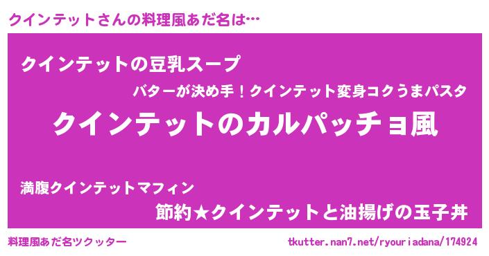| 女子向けラノベタイトル風あだ名 | 『クインテットが死なない童話 林檎のクインテットの診療簿』 |
