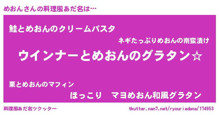 | ヘコむあだ名 | 『なまこ酢』『めおっふぃ~』 |