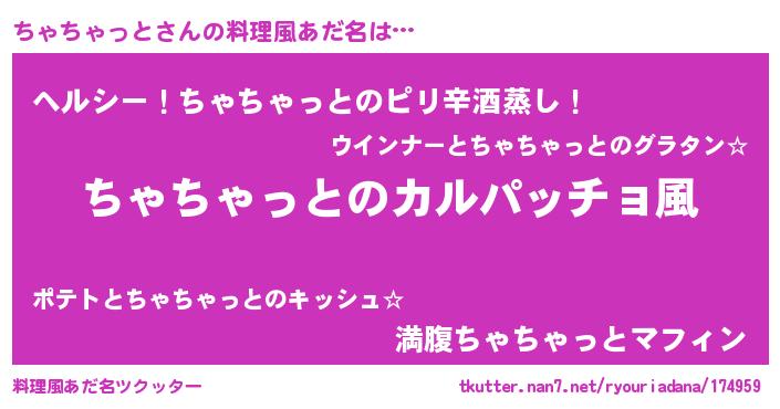 | ヒーロー風カッコイイあだ名 | 『仮面チャダー』『最強戦士チャチャット』 |