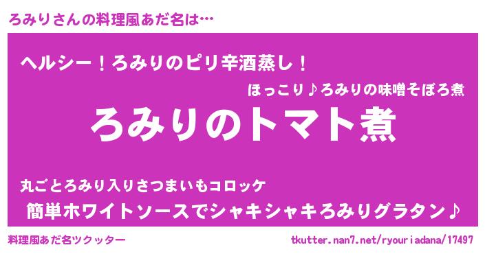 | 女子向けラノベタイトル風あだ名 | 『ろみり夫妻のなれそめ』『闇のろみり』 |