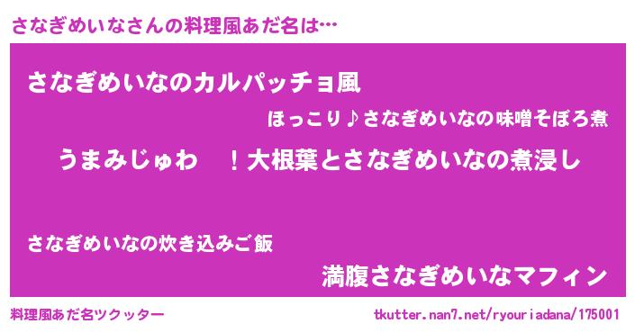 | ヘコむあだ名 | 『酢こんぶ』『さなぎめいな(小並感)』 |
