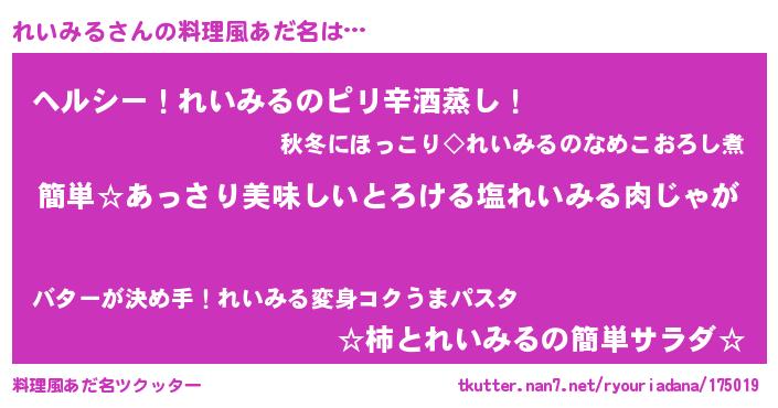 | 伝説のあだ名 | 『古文書に記された暗殺者れいみる』 |