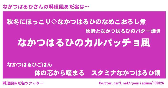 | ヘコむあだ名 | 『牛乳』『なかつはるひ(笑)』 |