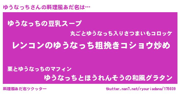 | ヘコむあだ名 | 『ゆう太郎』『ゆうなっち(爆)』 |