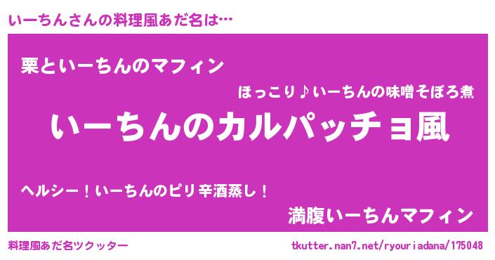 | 男性向けラノベタイトル風あだ名 | 『魔弾の王といーちん』『いーちんの憂鬱』 |