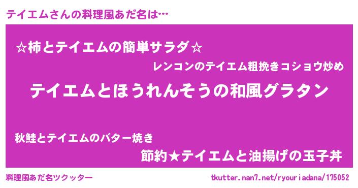 | ヘコむあだ名 | 『テイふぇ~』『テイエム(震え声)』 |