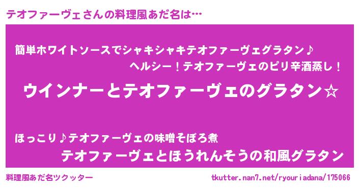 | ポケモン風あだ名 | 『テオフダネ』『ヒテオファーヴェ』 |