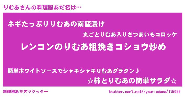 | ヘコむあだ名 | 『りむにゅー』『りむっちょ』 |