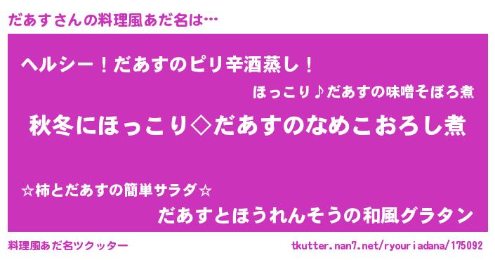 | 意味不明あだ名 | 『自称だあす』『ニラ科だあす属』 |