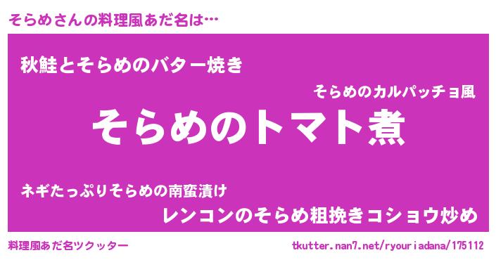 | ヘコむあだ名 | 『そらめ(笑)』『そらもー』『そらを』 |