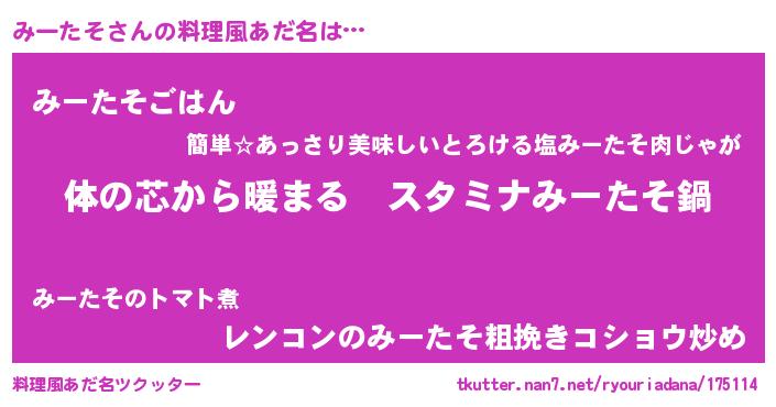 | 意味不明あだ名 | 『みーたそフォーエバー』『自称みーたそ』 |