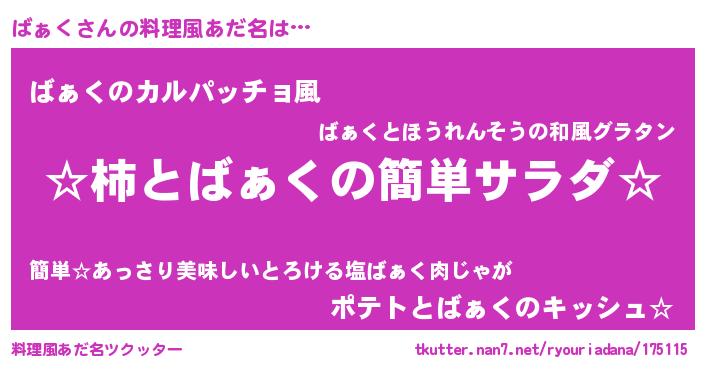 | 男性向けラノベタイトル風あだ名 | 『緋弾のバァク』『魔弾の王とばぁく』 |