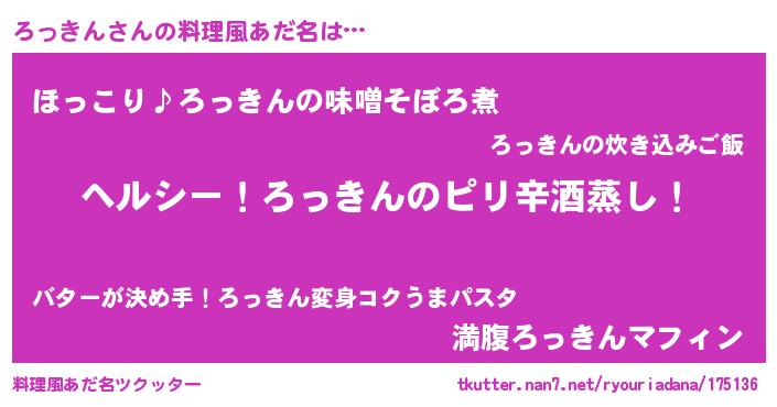 | 男性向けラノベタイトル風あだ名 | 『Re:ろっきんから始める異世界生活』 |