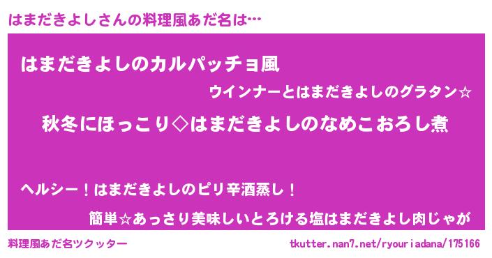 | 意味不明あだ名 | 『住所不定無職はまだきよし(12歳)』 |