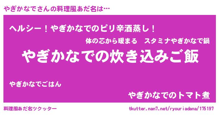 | 胡散臭い通販商品みたいなあだ名 | 『テレビで話題の高麗人参…その名も「やぎかなで」』 |