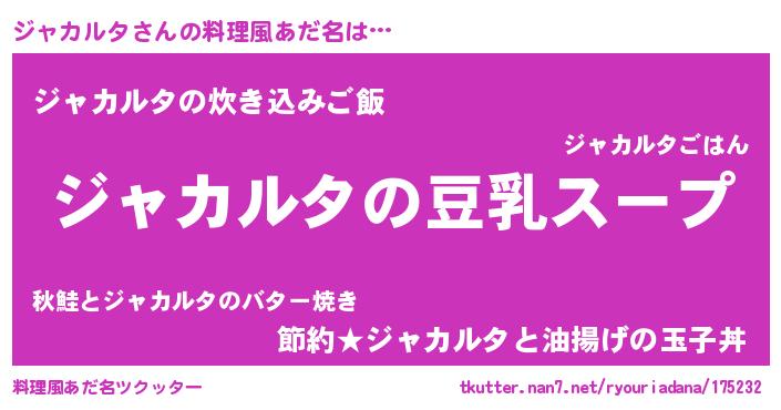 | 女子向けラノベタイトル風あだ名 | 『ジャカルタは平凡を望む』 |
