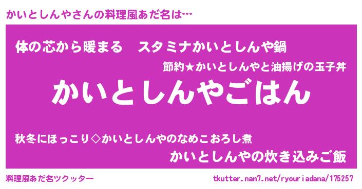 | 恥ずかしいあだ名 | 『かいっちょ』『プリティーかいとしんや』 |