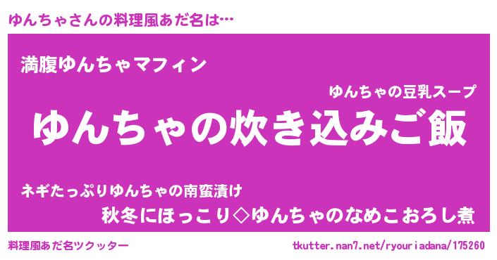 | 意味不明あだ名 | 『永久保存ゆんちゃ』『ペロリンゆんちゃ』 |