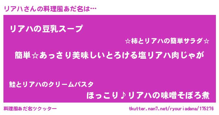 | ヘコむあだ名 | 『リアハ(笑)』『リアっぺ』『つくし』 |
