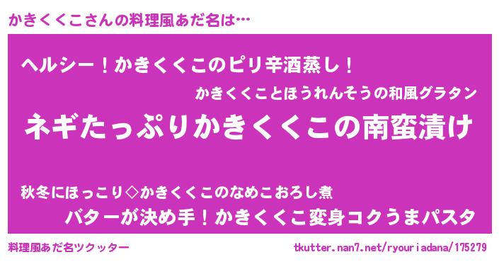 | ヘコむあだ名 | 『かきっふぃ~』『かきくくこ(震え声)』 |