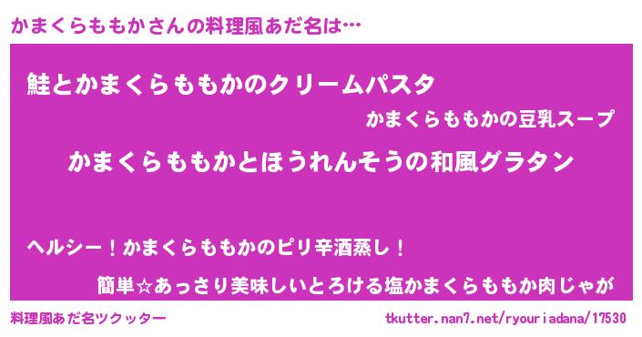 | 女子向けラノベタイトル風あだ名 | 『かまくらももかの玉の輿計画!』 |
