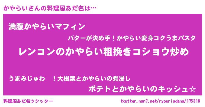 | 意味不明あだ名 | 『自称かやらい』『永久保存かやらい』 |