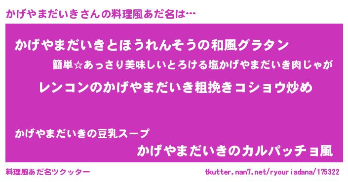 | 意味不明あだ名 | 『自称かげやまだいき』 |