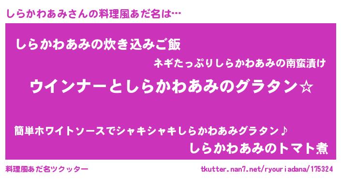 | 意味不明あだ名 | 『しらかわあみフォーエバー』 |