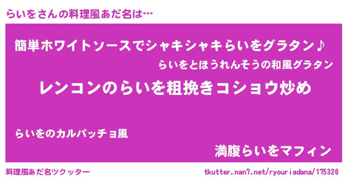 | 意味不明あだ名 | 『自称らいを』『とにかく怪しいらいを』 |