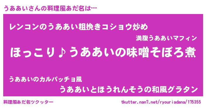 | 男性向けラノベタイトル風あだ名 | 『うああいの憂鬱』『魔弾の王とうああい』 |