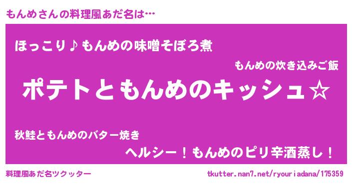 | 女子向けラノベタイトル風あだ名 | 『もんめの卵を拾いまして』『闇のもんめ』 |
