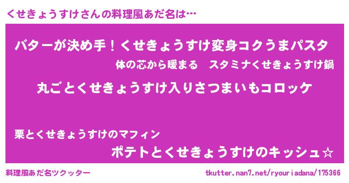 | 意味不明あだ名 | 『住所不定無職くせきょうすけ(91歳)』 |