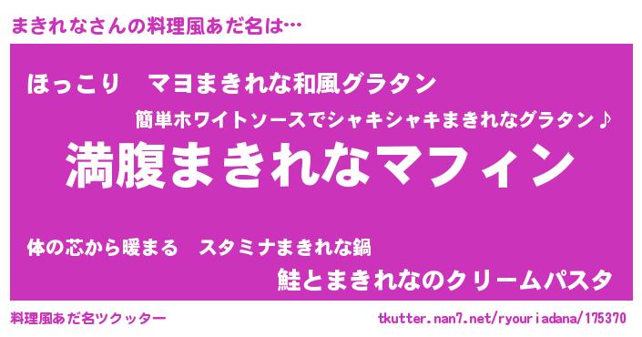 | 胡散臭い通販商品みたいなあだ名 | 『絶対に幸福をもたらす招き猫…その名も「まきれな」』 |