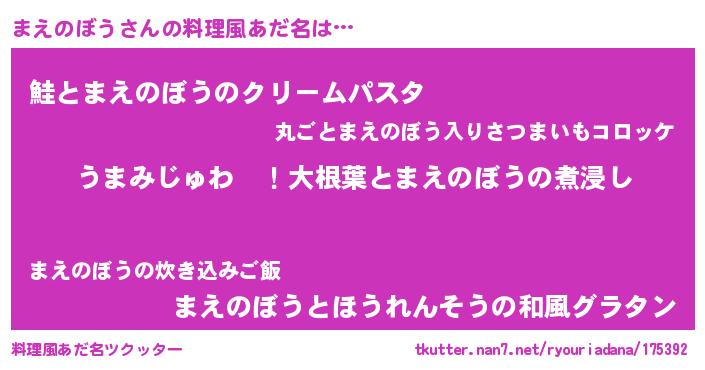 | ファンタジー風あだ名 | 『エターナルマエノボウー』 |