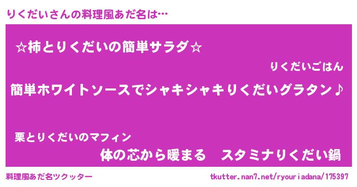 | 男性向けラノベタイトル風あだ名 | 『りくだいの嫁は女の子じゃないと思った?』 |