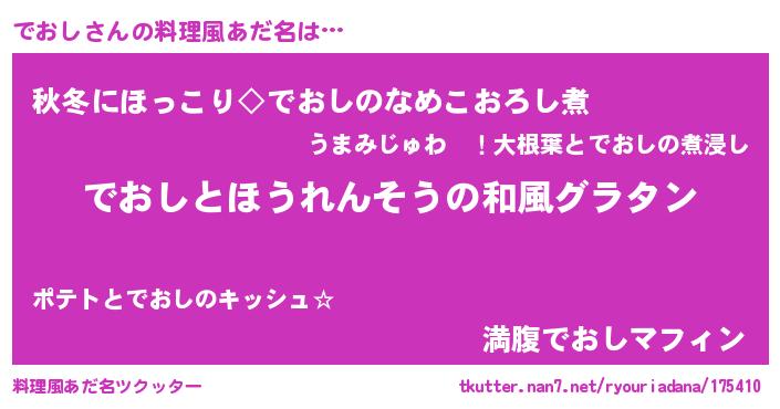 | 女子向けラノベタイトル風あだ名 | 『でおしの玉の輿計画!』 |