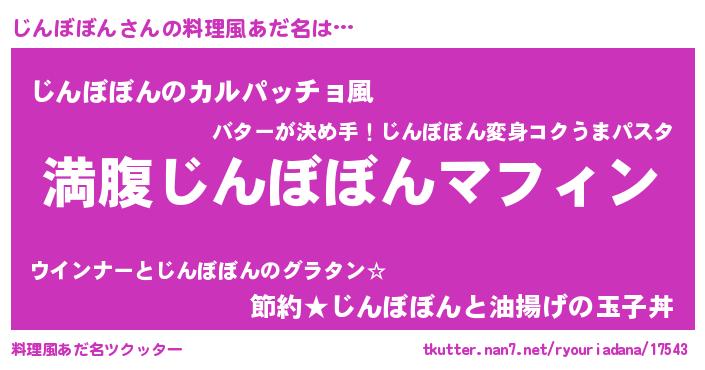 | 男性向けラノベタイトル風あだ名 | 『じんぼぼんという概念が存在しない退屈な世界 』 |