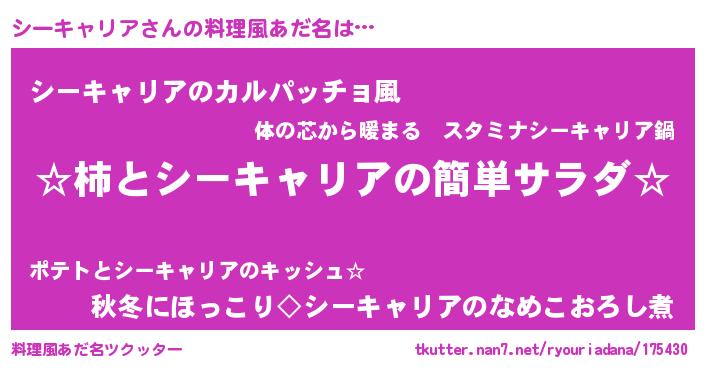 | 意味不明あだ名 | 『住所不定無職シーキャリア(86歳)』 |