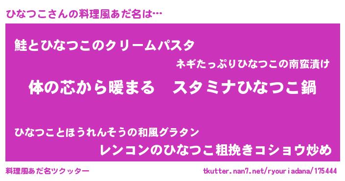 | ポケモン風あだ名 | 『ヒナツダネ』『ヒックウザ』 |