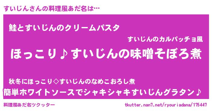 | 意味不明あだ名 | 『ペロリンすいじん』『永久保存すいじん』 |
