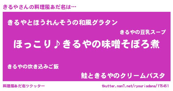 | ヒーロー風カッコイイあだ名 | 『スーパーキルヤ』『天空の使者きるや』 |